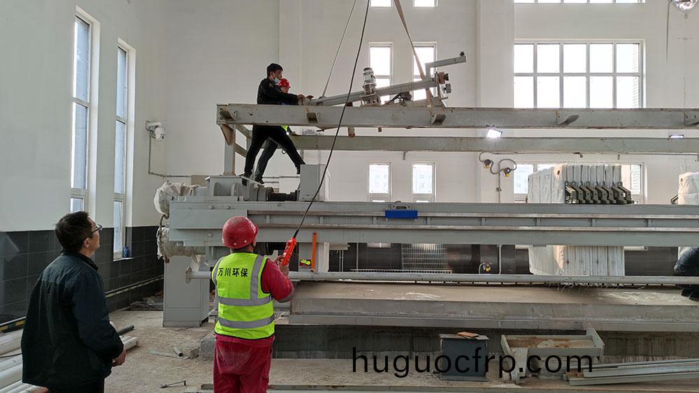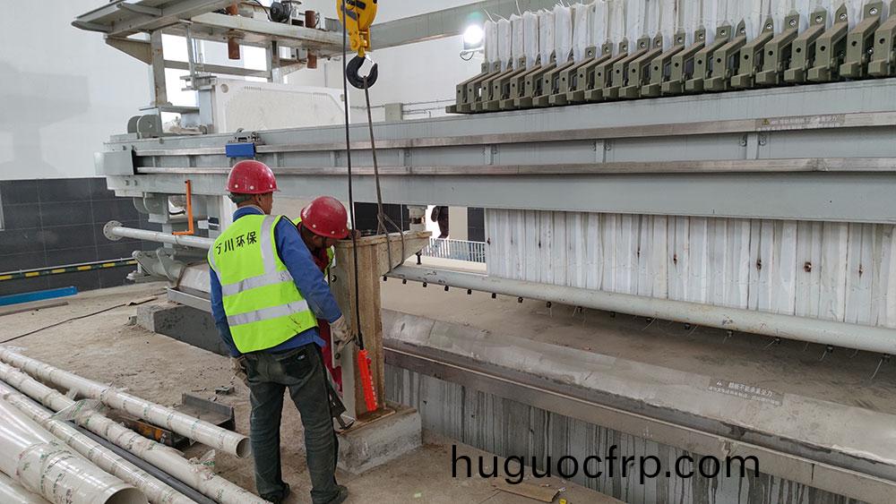 历城污泥脱水项目 主设备为470平方米板框压力机, 日处理含水率65%泥饼38吨,约合绝干污泥12吨。