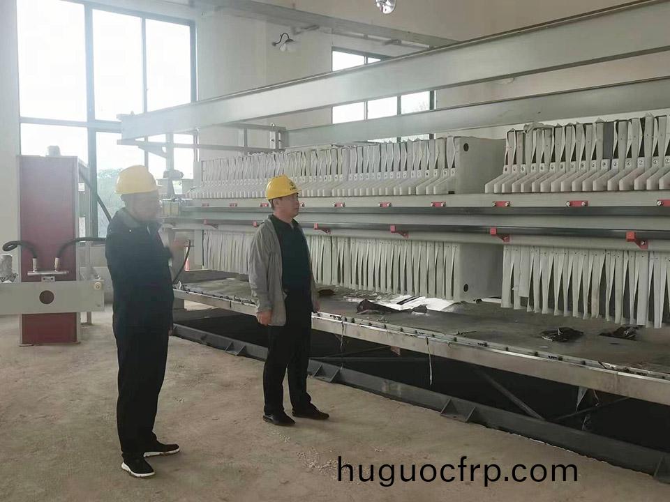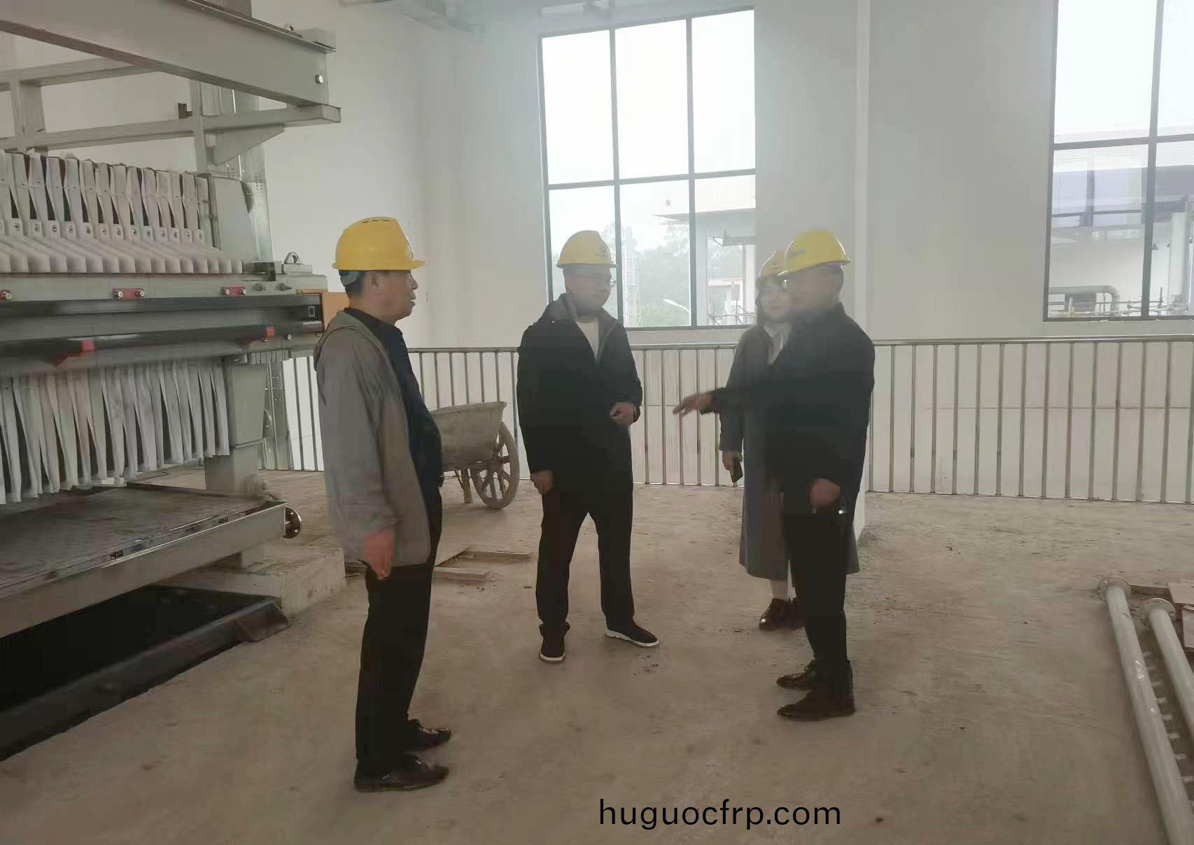 谢春磊董事长一行人冒雨实地现场查看了工地建设情况,板框压滤机、格栅除污机等大型设备的安装情况、工程进展和施工质量。每到一处施工点,谢春磊董事长都仔细询问施工进度及施工难点等事宜,项目部负责人就领导关心的问题一一作了解答。通过现场视察对项目工作进行了详细的了解。并强调要时刻不放松地抓好工程质量与安全管理,必须按照合理的进度计划,保质保量完工。