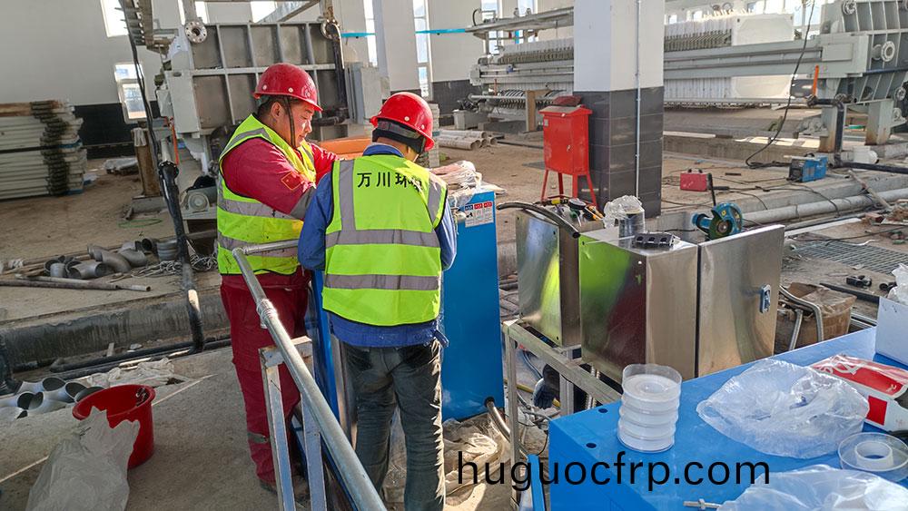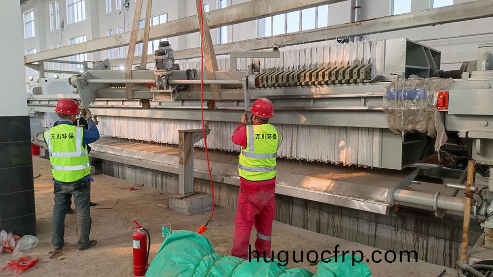 历城污泥脱水项目 主设备为470平方米板框压力机, 日处理含水率65%泥饼38吨,约合绝干污泥12吨。